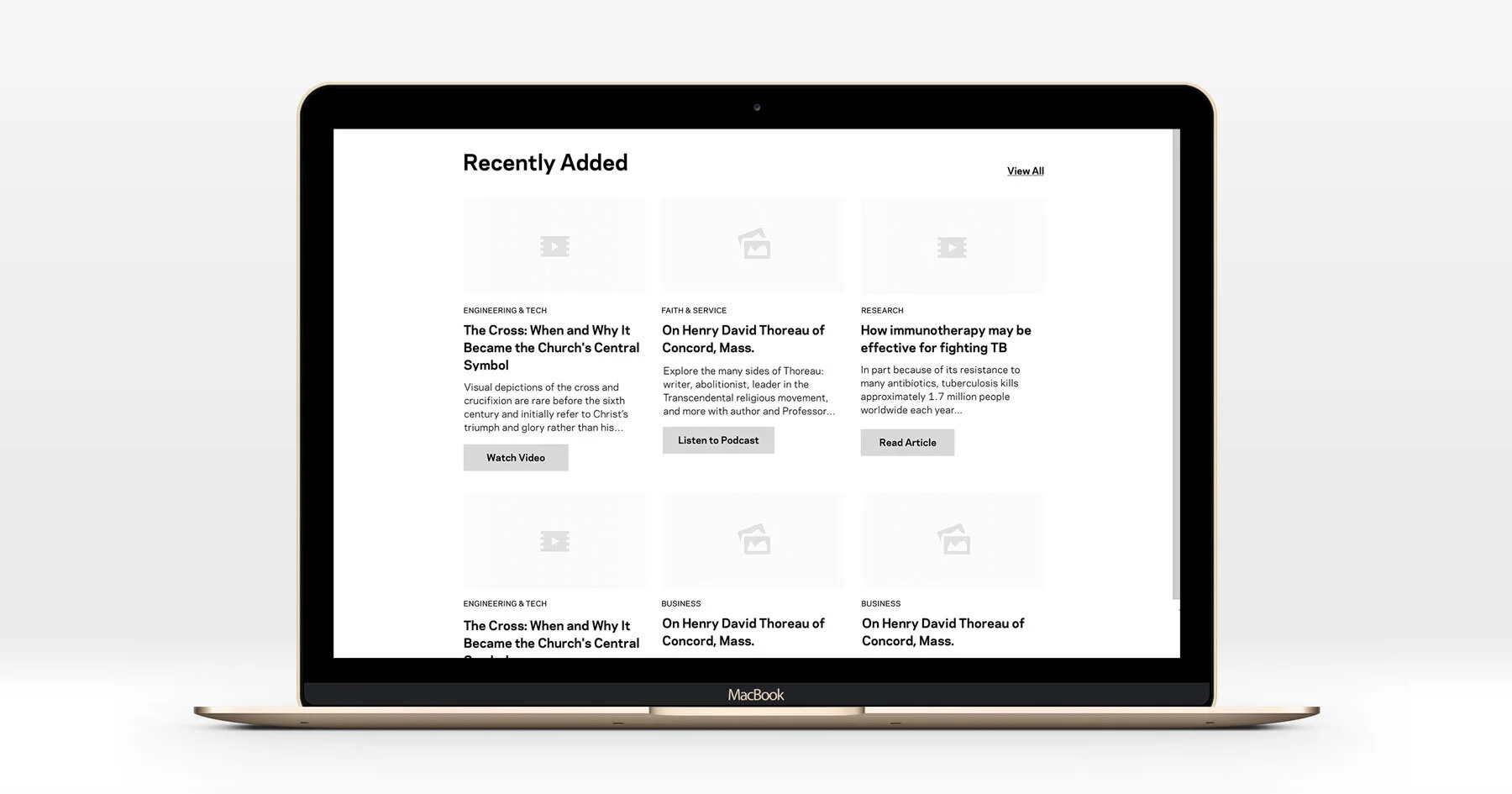 Our main goal was to create an accessible platform for an inquiring mind. One that’s rich with insights and topics generated by the minds of Notre Dame students and alumni. The interface was designed to engage and lead the viewer seamlessly through both topics of interest and continued learning services hosted by the University.